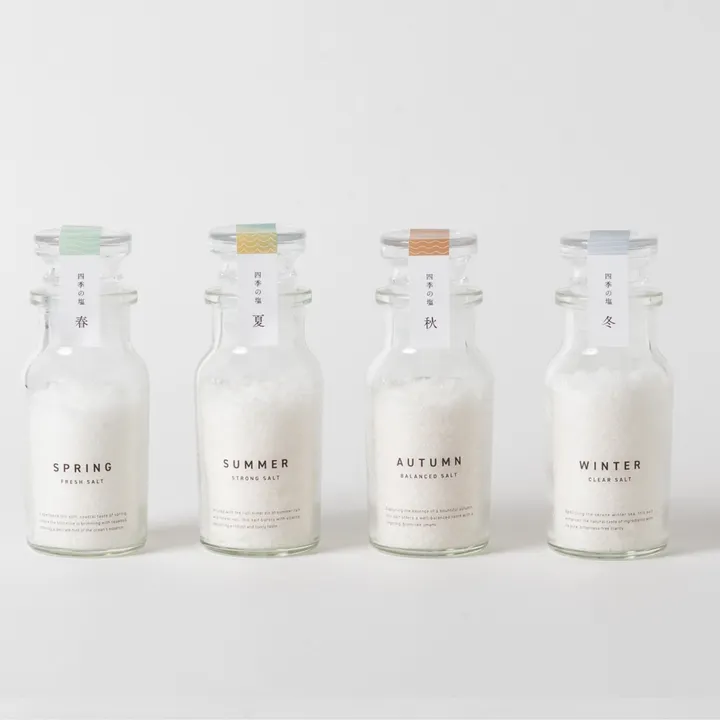 【商品内容】 四季の塩 春 [SPRING] 1個 四季の塩 夏 [SUMMER]1個 四季の塩 秋 [AUTUMN]1個 四季の塩 冬 [WINTER]1個 【四季の塩とは!?】 豊かな原生林に囲まれた汽水域※ 「油谷湾」の海水は、四季の移り変わりとともに、生態系が織りなすミネラルが変わります。その海水を季節ごとに汲み上げて作る「四季の塩」は、四季折々の特徴をもつ滋味深い味わいが特徴。 気候や食材が季節で変わるように、森と海のミネラルを豊富に含んだ海水からつくる塩には、四季それぞれの味わいが生まれます。旬の食材の味をぐっと引き立てる、旬の塩をぜひお愉しみください。 ※ 川から流れる淡水と海水が混ざりあう場所 【内容量】各40g 【全成分】海水(山口県) 【サイズ】各高さ105mm×幅43mm 【賞味期限】なし