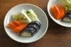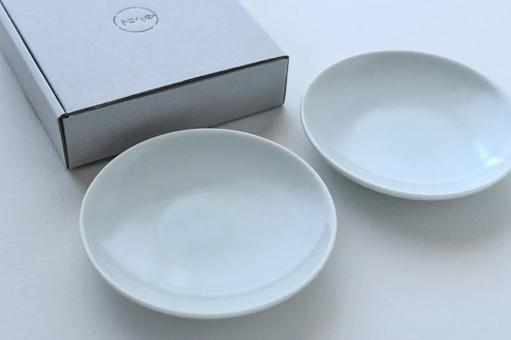 あたたかみと清楚さがある万能小皿 この小皿は、上のような白ごはん.comのデザインの入った箱入りで、【2枚組セット】のみの販売となります。 使い道が幅広い直径12センチのオリジナル小皿。 シンプルで丈夫でありながら、愛着がわ く よ う な “ 雰 囲 気 が あ る器”となりました。 清楚で温かみのある淡い青白磁で、器ごとに表情があります. 小皿の底の部分が真ったいらではないので、時には盛りにくさを感じることもあるかもしれませんが(例えばカットされたケーキなど)、ちょっと汁気のあるものにも使えて、つゆなどをお皿に口をつけていただくこともしやすい小皿にしたかったので、ゆるやかな傾斜をつけています。 1) ごくごく浅くて、なめらかな傾斜。 活躍シーンが多い形状&大きさ 2) 追求した丈夫さ、扱いやすさ。 洗ったあとに水もたまりにくい! 3) デザインの特徴は”手削りのレリーフ”。 外側だけなので、料理も映える! 4) 木の灰を使用した釉薬を使用。 自然灰だから、器ごとに表情が異なる! この器には、灰釉(はいゆう)と呼ばれる、木の灰を使用した天然灰の釉薬を使っています。木を燃やして灰にし、その灰をとる際にどうしても土なども一緒に混ざるため自然界にある鉄分なども含まれます。 鉄分が焼成の際に反応して黒い点となって現れるのですが、今回は器の表情が出るように、あえてそれらを取り除かず(濾しすぎず)、下のように器にぼんやりとした黒い点が出る(可能性がある)仕様にしています。 黒い点は器ごとに出方や大小の違いがありますが、ぜひそれらを器の味わいや魅力の一つとして感じていただけたらと思います! 釉薬のかかり方、焼く場所、鋳込み型の使用頻度などによって、どうしても器一つ一つの表情が異なるため、それらをぜひ器の味わいや魅力のひとつとして楽しんでいただけたらと思います。 ○器の色合いについて ご使用のブラウザやPCモニターにより写真と現物の色が違って見える場合があります。