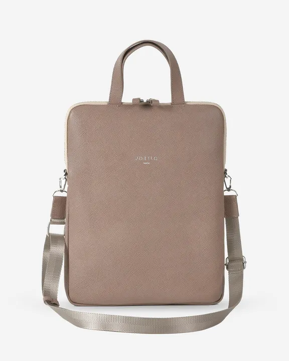 持ち運ぶのはPCと小物だけそんなミニマリストの方へ カフェやシェアオフィスでリモートワーク。通勤で持ち運ぶのはPCだけ。そんな時に活躍するのがこのPCスマートバッグ。細かいエンボス模様が型押しされた本革サフィアーノを全面に採用された高級感たっぷりのPCバッグ。MacBook13インチのほか、B4サイズノートや電源ケーブル、小さめの財布、ペンケースが収納可能。電源タップや小物を持ち歩く方は別売りのポーチに収納がおすすめです。 PCと財布や小物だけを持って、ちょっと外でお仕事。場所を取らないスリムな設計はパブリックなスペースにぴったり。ビジネスマンにとっては、社内での打ち合わせ移動時やPC作業時にも使えるため、オフィスにひとつ持っていると大変便利なアイテムです。スリムでスマートなフォルムはスーツスタイルをワンランク上に演出します。 ※ポーチは別売りです