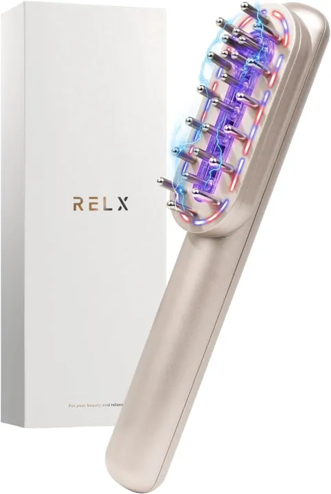 【選べるモード&2種類のEMSリズム】 RELX(リラクス)ヘッドブラシは、『EMSモード単体』『LEDモード単体』『EMS+LEDモード』の3種類を搭載。さらに、2パターンのEMSリズムと、4段階の出力レベルから、お好みのモードをお選びいただけます。 超軽量&ラウンド型設計で、身体や頭皮・フェイスラインに沿いやすく、心地よい使用感をサポートします。毎日のセルフケアに取り入れやすい設計です。※使用感には個人差があります。本製品の効果や体感を保証するものではありません。 【EMSモード操作法】 ①電源ボタンを長押し(約3秒)すると、青ランプが1つ点灯し、「赤色LED」+「EMSモード」がレベル1から始まります。 ②EMSボタンを押すたびに、レベル2(青色ランプ2つ点灯)→レベル3(青色ランプ3つ点灯)→レベル4(青色ランプ4つ点灯)→EMSモード(OFF)…と切り替わります。 ③電源ボタンを長押し(約3秒)すると、電源OFFになります。 ※EMSモードを使用中に電源ボタンを素早く2回押すと、青色ランプがすべて点滅し、EMSの振動リズムが変わります。 ※EMSモードのみで使用したい場合は、LEDボタンを4回押すとLEDモードがOFFになります。 【LEDモード操作法】 ①電源ボタンを長押し(約3秒)すると、青ランプが1つ点灯し、「赤色LED」+「EMSモード」がレベル1から始まります。 ②LEDボタンを押すたびに、青色LED→赤青色LED(MIX)→赤青色LED(MIX)点滅→LEDモード(OFF)…と切り替わります。 ③電源ボタンを長押し(約3秒)すると、電源OFFになります。 ※LEDモードのみで使用したい場合は、EMSボタンを4回押すとEMSモードがOFFになります。 【動作時間・充電時間】(動作時間)約2時間 (充電時間)約2.5時間 ※DC5V⎓1AのACアダプターを使用した場合 【使用前のご注意】アタッチメントはIPX4ですが、本体は防水仕様ではありません。絶対に水洗いしないでください。EMSモードをご使用の際、お肌が乾燥していると電気刺激を感じにくい場合があります。使用前に、化粧水や水で軽く湿らせてからのご使用を推奨します。電気刺激の感じ方には個人差があり、部位によっても異なります。安全のため、部位を変える際は必ずEMSレベル1から段階的に調整してください。 【内容物】本体、Type-C USB充電コード、日本語取扱説明書(保証書付き) ※本商品にはACアダプターは付属されておりません。※出力値:5V⎓1A相当のものをご使用ください。※出力値:5V⎓1A超のものをお使いになられて故障した場合、保証期間内でも保証対象外となります。※充電時には必ず付属の充電ケーブルをご使用ください。 【本体重量】約115g