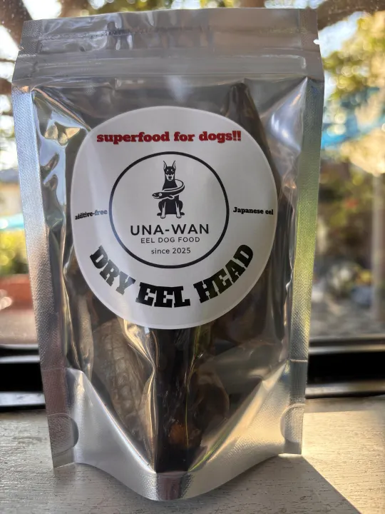 鰻の名店から仕入れた鰻の頭と骨を血抜きをして、1時間以内に高温で急速乾燥させて作られています。 サクサク、パリパリ、栄養満点、ワンコやみつきの逸品です。