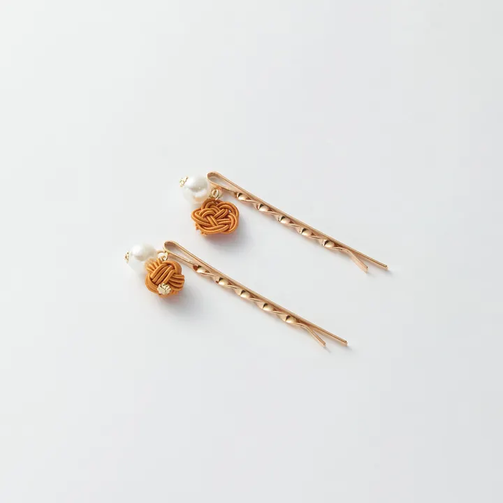 伝統の結びを纏う、格調高き小玉ヘアピン 古来より縁起の良い結びとされる水引。その繊細な技を極めた「小玉」が、気品ある輝きを放つヘアピンとなりました。 控えめでありながらも、格式と美を兼ね備えた佇まい。髪に添えるだけで、装いに品格と趣をもたらします。 格式ある和装から、洗練された洋装まで調和する気品を備えた逸品です。 雅やかさと静謐な美しさを宿した、特別なヘアピン。 日常の装いに、そして晴れの日に。日本の伝統が織りなす優雅な輝きをお楽しみください。