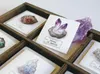ARコンテンツが楽しめる、鉱石標本風バースデーカード。 AR(拡張現実)の技術を取り入れたグリ ー ティングカ ー ドです。AR マ ーカ ーを読み込むと現れる鉱物の原石。 タップし続けると美しい 宝石に変化し、お祝いのメッセー ジが表示されます。 受け取った後 も楽しめる、体験型のカ ー ドです。 ※各10部のご注文で専用の採取箱を無料でお付けします。(各5部の場合¥ 3,000で お付けします) ======================== 〈遊び方〉 ①カー ドの中面左にある二次元コ ー ドを読み込んだ後、カメラを右の岩のマークにかざすと、原石が現れます。 ②画面をタップして現れた原石を採掘していくと、美しい宝石へと変化 し、メッセージが表示されます。 ※ARバースデーカードは Web-ARのため、アプリのインストールをすることなくウェブブラウザでお楽しみいただけます。