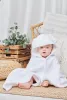 <商品説明> ・首元をスナップで留めるタイプ。マントのようにして着用できます。耳付きフード。 ・赤ちゃんが口に含んでも大丈夫な安全性エコテックスクラス1認証。 ・やや厚手のふかふかコットン。肌触りが心地よく、高級感があります。 ・吸水性がよく、厚手なのに(体感的に)乾くのは遅くはありません。 ・洗濯乾燥に強く、丈夫で長持ちします。ふかふかも長持ちします。 ■サイズ:フリーサイズ 縦65x横120(フード部分除く) ■カラー展開:5色(ホワイト・ベージュ・グレー・パールグレー・ローズ) ■生産国:トルコ製(フィンランドデザイン) ■素材:綿100%(エコテックスクラス1認証済) ■取り扱い:洗濯機乾燥機可。柔軟剤不可。 ■添付品・国内加工・商品説明シール貼付(日本語)商品内容、素材、取扱注意記載。 ■梱包サイズ:縦30x横40x厚5 重量:約500g ■発注個数:1個から可(色を組み合わせて、合計2個から推奨) <日本での販売> 日本では、リカトレーディングビューロー合同会社(名古屋)が独占販売権を持ち、2017年から輸入販売を開始しました。 全国百貨店のポップアップを中心に、小売店、オンラインショップ、カタログギフト、ホテル、温浴施設、サロン、ショウルームなどに卸しています。 展開売場は、北欧、バストイレタリー、タオル、婦人服雑貨、サウナスパ、ビューティーなど、幅広く展開可能です。品揃えなど、ご相談ください。