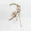 桜をモチーフにしたエレガントなイヤーフックです。 花の部分は透明感のあるディップフラワーで作られ、繊細で華やかな輝きを放ちます。 長く垂れ下がるチェーンと雫ビーズが、水滴のように揺れ動き、自然の美しさを耳元で表現します。 和装や洋装を問わず、特別な日のコーディネートに上品なアクセントを加え、しなやかで優雅な印象を与えます。