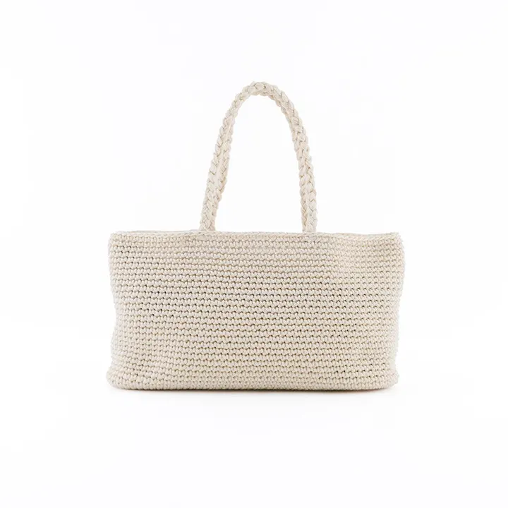 軽くて出し入れしやすい ハンドクロシェの横長トート NT(ナチュラル)