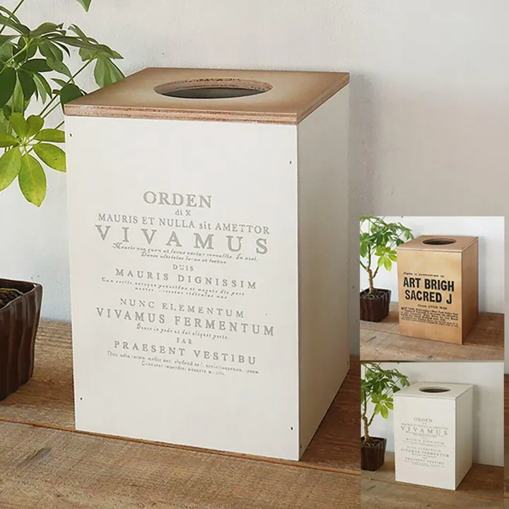 北海道 旭川市の自社工場で製作しています 中に入れたゴミが見えないのでお部屋がスッキリした印象に。 内側にはゴミ袋掛けがついています。 中身を捨てる時は上蓋が取り外せます。 ■商品サイズ 本体外寸 約 横幅194×奥行194mm×高さ280mm (板の厚みなどで、多少の誤差が出る場合があります) ■材質 合板を使用。 木目、色合いなどが1つ1つ違います。