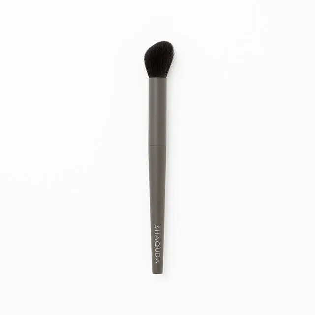 斜めにシェイプした丸みのある穂先が、目元の角度に絶妙にフィットするブライトアップブラッシュ。ハイライトやアイメイクのベースカラーをふんわり優しくのせることで、ナチュラルで透明感のある目元まわりを演出します。ハンドルの裏面には、置いた時に転びにくいシャープなカットを施しています。