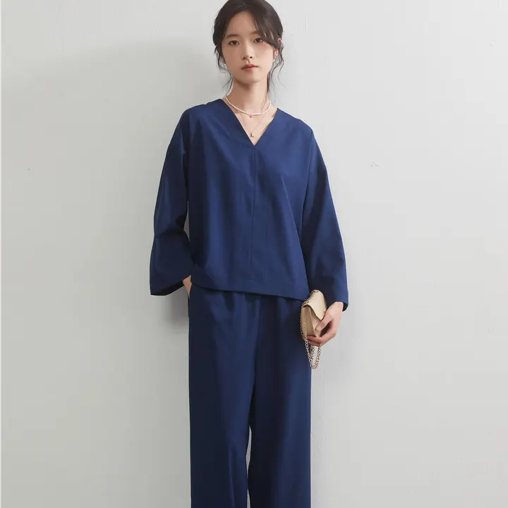 KNGT612-Vネックセットアップ・イージーケアモードスタイル MAVY/L
