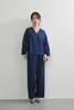 商品の特徴 シンプルで洗練されたデザインのVネックブラウスとワイドパンツのセットアップ。ゆったりとしたシルエットでリラックス感を保ちながらも、上品なラインを演出。オフィスからカジュアルフォーマルまで幅広いシーンで活躍する万能アイテムです。 生地の特徴 ポリエステル素材を使用したイージーケア仕様で、シワになりにくく、お手入れも簡単。さらりとした肌触りと軽やかな着心地で、一日中快適に過ごせます。シルエットを美しく見せる上質な素材感も魅力です。 コーディネート提案 セットアップで着ることで、統一感のあるエレガントなスタイルが完成。ブラウスはパンツにインしてすっきりと見せるのもおすすめです。シンプルなアクセサリーをプラスするだけで、オフィスからカジュアルフォーマルまで対応可能。上下別々に着回してもおしゃれに決まります。 モデル身長165㎝ Mサイズ着用 サイズ展開 M/L 単位(cm) Mサイズ ブラウス:バスト 104、身丈 57/62、裄丈 68 パンツ:総丈 96,ウエスト64~70、ヒップ 104、股下 60 Lサイズ ブラウス:バスト 110、身丈 58/63、裄丈 69 パンツ:総丈 97,ウエスト69~77、ヒップ 110、股下 60 素材 ポリエステル100% 中国製 透け感:なし 光沢感:なし 伸縮性:なし 洗濯方法:家庭洗濯可 【注意点】 ※撮影商品はサンプルの為、実際の仕様と異なる場合がございます。 ※画像の商品は光の照射や角度、お使いのモニター環境により、実物と色味が異なる場合がございます。スタジオ物撮りの画像が実物の色味に一番近くなっております。 ※予約商品の場合、お届け予定はあくまでも目安となります。 生産の都合上、お届け時期がずれる場合がございますので、あらかじめご了承ください。 ※表記サイズは商品の実寸です。 ※布製品の特性上、サイズ表の実寸法は多少の誤差が生じる場合がございますので、予めご了承ください。 #レディースセットアップ 春#Vネックトップス ゆったり#きれいめカジュアル セットアップ#大人シンプル コーデ#オフィスカジュアル レディース#2点セット レディース 上下#リラックスウェア おしゃれ#体型カバー セットアップ#ワイドパンツ セットアップ#通勤コーデ 春夏