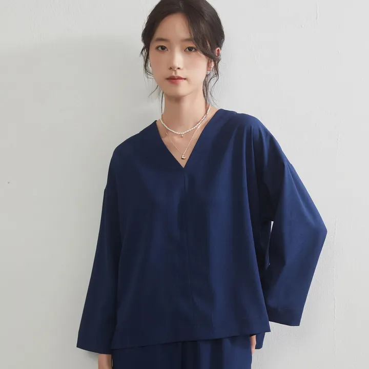 KNGT612-Vネックセットアップ・イージーケアモードスタイル MAVY/M