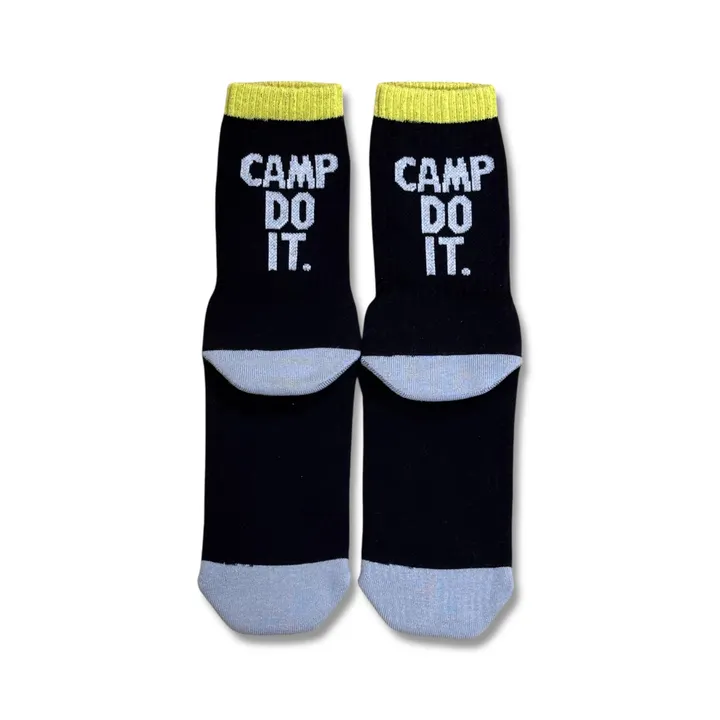 ご好評いただいてます キャンプソックスの新色ができましたー。 『CAMP DO IT.』 いつでも、キャンプしようぜ!って気持ちに溢れてるソックスです。 もちろん、キャンプ以外でも履いてほしい。 キャンプしない人にも履いてほしい。 いや、誰でもいいからみんなに履いて欲しい! そんなソックスです。w Product Description New colors are here for our popular camp socks. “CAMP DO IT.” — a message that’s all about being ready to camp anytime, anywhere. Of course, they’re great for camping—but we want you to wear them beyond the campsite, too. Even if you don’t camp at all. Honestly, we just want everyone to wear them. That kind of socks.