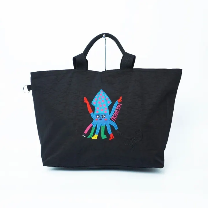 【商品説明】アーティストYUのパスキートンフレンズの刺繍がとてもキュートです。 ▲お取り扱いの注意 本製品は濃色、刺繍糸の色落ちすることがあります 洗濯は単独で洗って下さい。 〔サイズ詳細〕 高さ 37㎝ 横幅〔上部〕60㎝ 横幅〔下部〕44㎝ マチ 18㎝ ハンドルの高さ 15.5センチ ショルダーの高さ 36㎝ 〔素材〕 ポリエステル100% made in china 旅先でも可愛いバッグを持ちたい、そんなあなたにおすすめのトラベルbag。軽くて丈夫なので、旅行にも日常にもぴったりです。pasquitonキャラクターの刺繍があしらわれたデザインは、きっとたくさんの人の目を引きます。 特に、このバッグの素材は洗えるのが嬉しいポイント。旅行先で汚れが気になっても、帰ってすぐに洗えばいつでも清潔に使えます。また、コンパクトなので旅先での機内持ち込みにもオススメです。 このトラベルbagを持って旅に出かけると、一気に気分も上がります。普段使いでも可愛く持てるので、ぜひ一つ持っておくと便利です。
