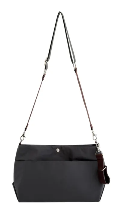 デイリーユースにちょうどよい、シンプルなバッグ&ポーチ。 大人が毎日持ちたくなる品の良さを目指しました。 必要なものだけポンポン入れてさっとお出かけできる、ほどよいサイズ感のミニショルダーです。 イメージ画像にあるように、ファスナーポケットの内側はシルバーコーティングされていますので、保冷剤や冷えた飲み物などを入れて持ち歩く際に重宝します。 もう一つ小さな内ポケットと、便利な外ポケットも付いていて使い勝手◎ 付属のアクセントチャームは、アームカバーやストールのホルダーとして使えます。 大人っぽい配色デザインで艶のあるショルダーが、洗練された日常スタイルにぴったりです。 本体表地は撥水加工済です。 ※撥水加工は永久的なものではありません。また、完全に水を防ぐものではありません。