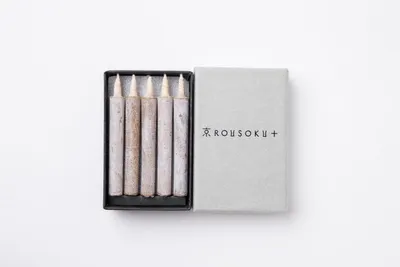Kyo ROUSOKU+蠟燭最大的吸引力在於,它們是真正的日本蠟燭,由工匠使用木模一一製作,粘在橡木蠟等100%植物材料上。