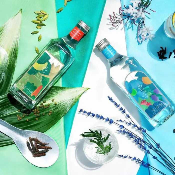 無酒精烈酒「藍色天堂」和「綠色秘密」以<蒸餾>×為特徵,且<non-alcoholic>「非甜」。 它是一款創意十足、適合成人的無酒精飲品,乾爽、植物香氣濃郁,像酒精一樣充滿奇趣。