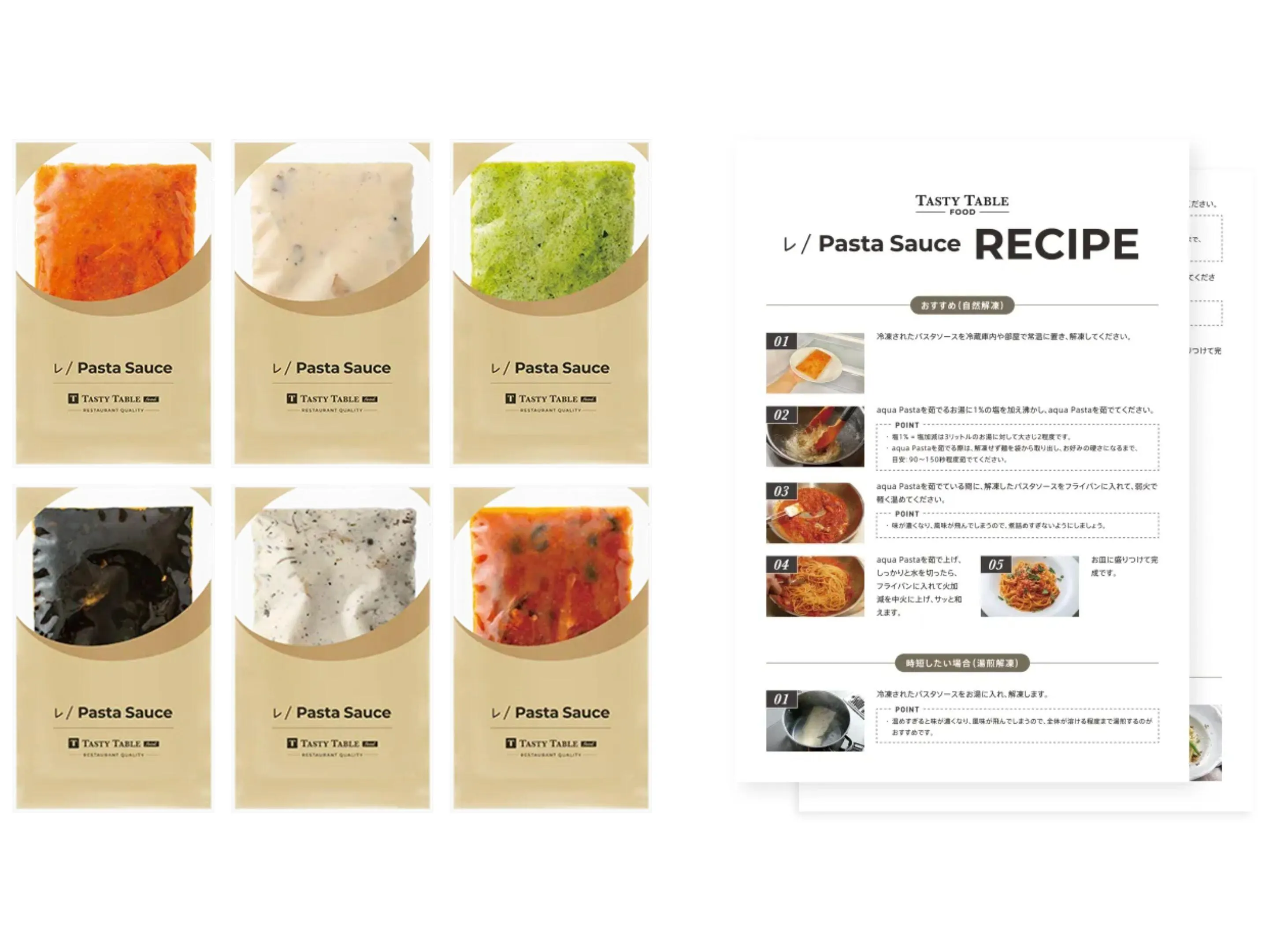 只要將解凍的醬汁加熱,輕輕放入平底鍋中拌入即可。 大約10分鐘內,即使在忙碌的日子裡,也能品嚐到餐廳的道地風味。