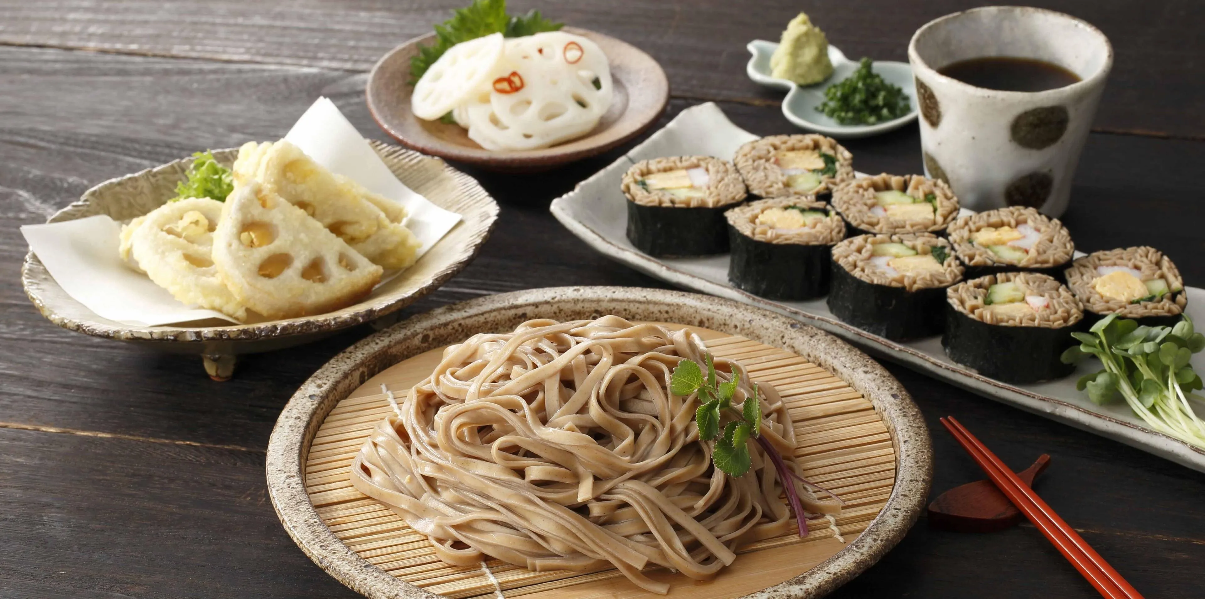 基於「品嚐大自然的祝福」的理念,池本食品提供多元原創產品,包括岩國蓮藕麵、山口與岩國的傳統調味料,以及商業用途的原料。 為了實現品牌的世界觀,我們首先重視的是材料的選擇以及對製造方法的承諾。 岩國蓮藕麵是不含添加劑的麵條,僅使用國產小麥、岩國蓮藕粉、沖繩鹽和廣島牡蠣加拉製成,且不使用蕎麥粉或鹽水。 在一家不處理蕎麥麵且對過敏友善的麵廠裡,工匠們花了60小時慢慢陳年並晾乾蕎麥麵。