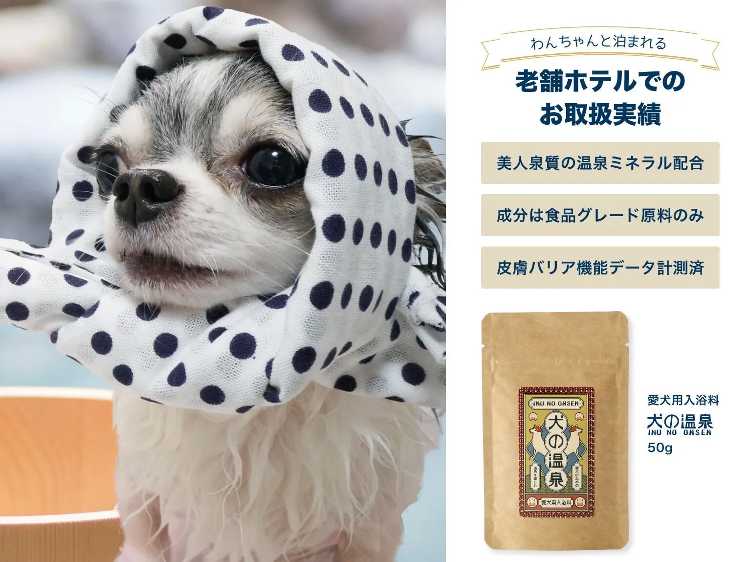 “隨時隨地感受溫泉的感覺” 狗溫泉是由獸醫監督的狗洗澡費。 在享受溫泉感覺的同時,輕輕清潔狗狗的皮膚。 成分只是食品級成分,所以擔心狗狗會舔它們的主人可以放心使用。 我們正在與獸醫醫院合作開發產品,這些產品可以通過我們自己的途徑測量皮膚屏障功能。