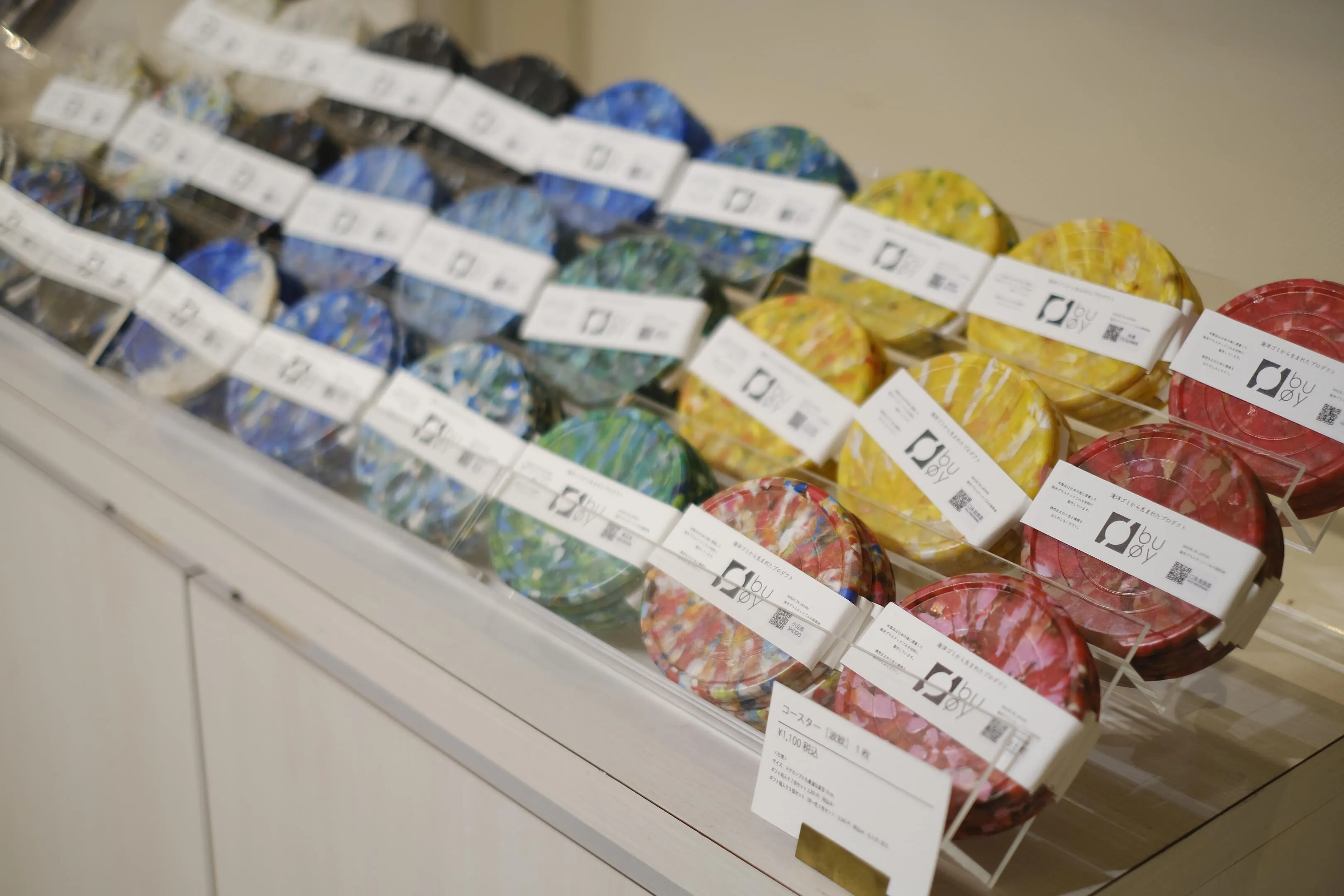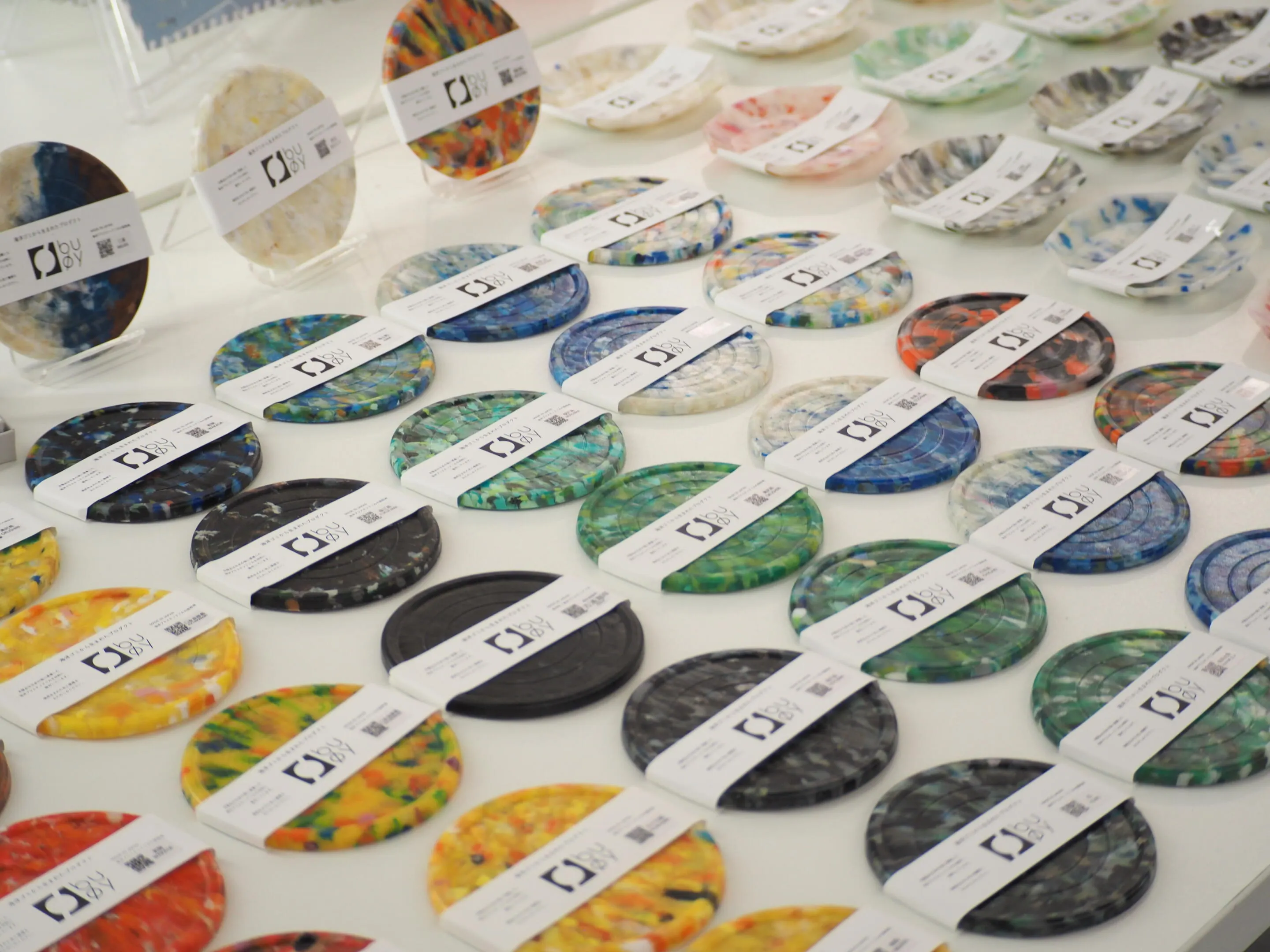 Buøy 是一個塑膠製造商的升級再造品牌,該品牌「用廢棄塑膠製造非一次性產品」。 這個計畫起初是希望提升對日本各地沖上岸的海洋塑膠廢棄物的認識與收集,並創造思考塑膠產品理想方式的機會。 我們運用專利技術,製造出獨特圖案、100%海洋塑膠廢棄物的產品。 我們從全國超過30個組織收取費用購買海垃圾,並在產品上標示「誰撿走的、在哪裡撿走的」。 海洋垃圾問題不僅限於登陸區,而是整個社會的共同問題。 透過建立一套系統,讓偏遠地區的人們能透過產品支持沿海清理活動,BUOY旨在共同打造永續的未來,並展望未來產品將無法再被製造出來。