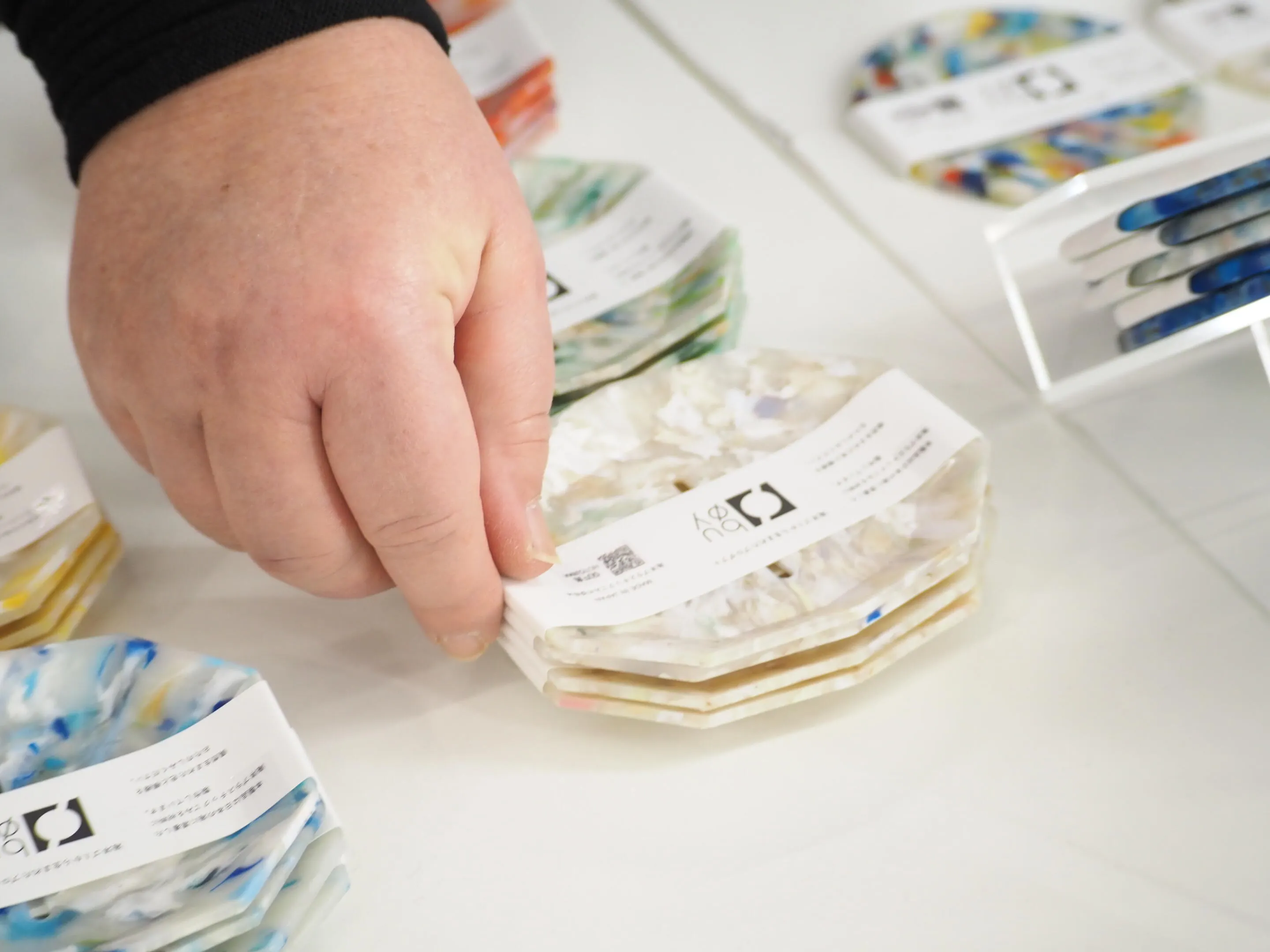 いつもお世話になっております!カラーバリエーションが豊富で、かつ一点一点少しずつ違う表情に、お客様がみなさん「どれにしよう!?」と真剣に悩まれてお気に入りを購入して下さいます。「違う色も欲しくなる」「パートナーにもプレゼントしたい」とリピート購入される方も多くいらっしゃいます。「買うだけで、海洋プラスチックのゴミ拾いをしているようで、気分もいい」とのお声を頂き、環境に優しいお買い物を広めたいと思っている当店にとっても、とても嬉しいお声をいただいています。素敵なプロダクトをありがとうございます!!
