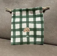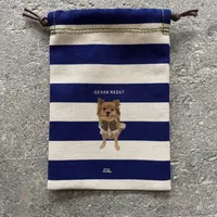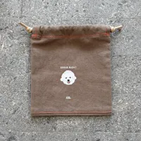 [邊框束口] 原創插畫 狗狗圖案 抽繩 包包 厚布 也當作禮物 博美犬(約100毫米×150毫米)