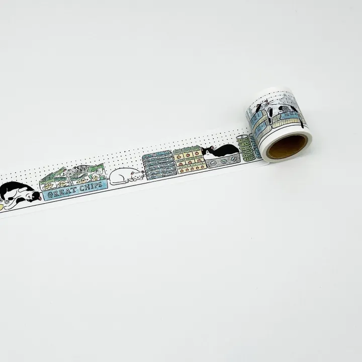 『神崎遙的雜貨店』 我畫了調皮的貓咪坐在海外超市的貨架上。 貓咪睡在箱子裡、貓咪玩販售物品,以及貓咪迷失在糖果裡都是免費的。 「讓人想送出去的固化膠帶」 它手工切割容易,材質防水,用於裝飾從文具、室內用品到水管和戶外用品。 它也廣泛用於包裝和包裝。 Nekoto的固化膠帶色彩豐富且設計優良,也是完美的禮物。 ----- 神崎遙 出生於靜岡縣濱松市,現居東京。 畢業於早稻田大學文學部。 在平面設計辦公室工作期間,他也活躍於自由插畫家的身份。 他喜歡畫各種雜物、食物和動物。