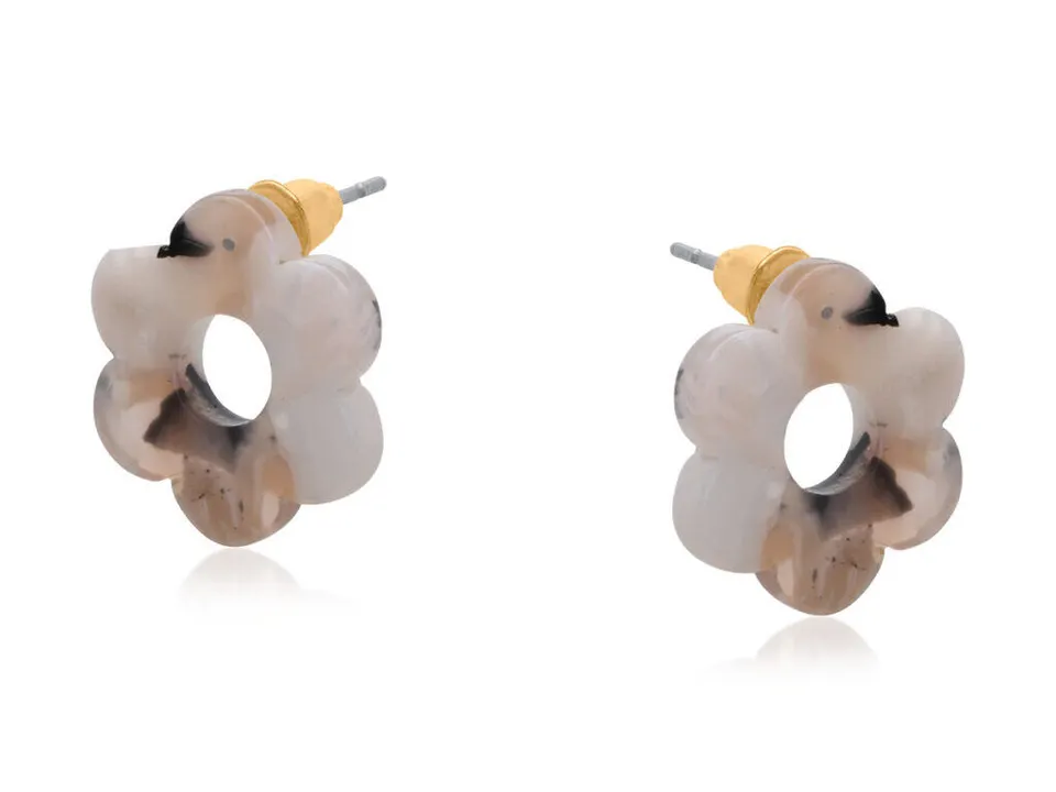 4057 Rosa 小樹脂花朵耳環 灰褐色