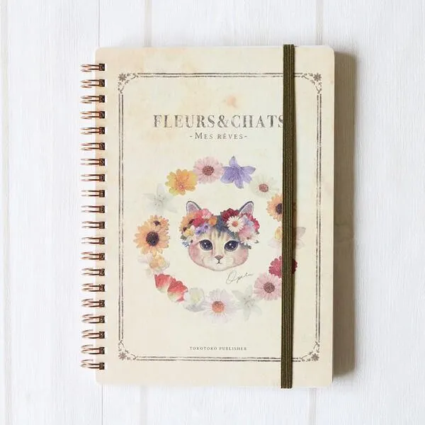 一則來自《Fleurs&chats》的戒指音符,描繪貓咪頭上戴著美麗的花卉裝飾。 表面設計成舊插畫書的封面,與深綠色的帶子完美搭配。 背面有誕生花和花語,請為自己或摯愛尋找出生花。 [貓][貓][貓][日本製造]【新學期】【蘿絲】[進場] 貓用品? 可愛的文具附日文插畫 | 日本製造