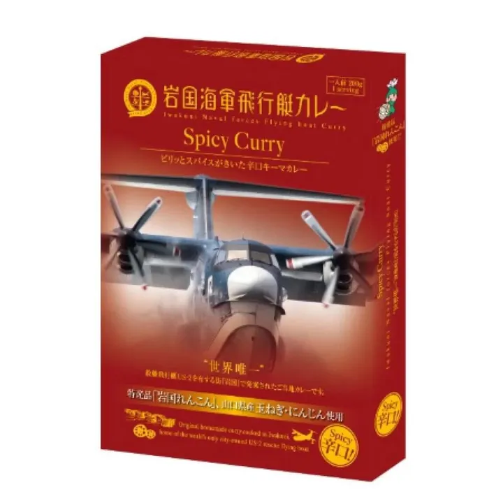 岩國海軍水上飛機咖哩是由岩國海上自衛隊岩國基地構思的本地咖哩,該基地擁有世界上唯一的救援水上飛機單位。 它使用岩國蓮藕,這是山口縣岩國市的特產,並製作以牛肉和豬肉絞肉製成的咖哩(山口縣加納農場)。 請享受岩國蓮藕的溫暖。 [辣(乾)]