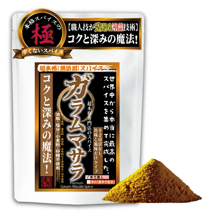 特製加蘭香料 與市售產品完全不同 國王晚餐香料 無麩質 濃郁與深度的魔力 無添加物 無色素、香料、鹽分或甜味劑 香氣鮮味 咖哩中多功能調味料 民族料理 含有高品質豆蔻 市售咖哩麵與咖哩粉 製作雙級正宗咖哩 ♪ 精緻香料 特製「無辣」|50g×1包