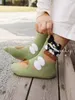 [2025年春夏新作] 貓咪插畫貓咪圖案襪子套組,三款黃綠色「MEWJI Miaoji」☆ 時尚 |影像顏色(1對3對)