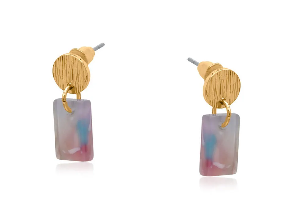 4046 Lola 小樹脂方形耳釘 綠松石粉色