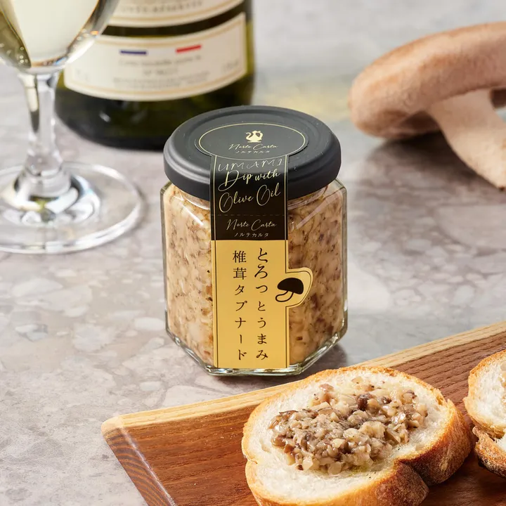 過敏原: 無 營養成分標示(每 1 個):能量 160kcal、蛋白質 3.4g、脂肪 12.5g、碳水化合物 8.5g、鹽當量 4.0g 【商品描述】 ============================ 【濃濃的鮮味香菇 Tapenade】 我們在「第二屆麵包友誼錦標賽」中獲得了「最高金獎」! ============================ 秋田縣的香菇被切碎,並使用鹽漬麴和白葡萄酒製成橄欖醬風格的飾面。 鹽麴的溫和鹹味和shituru的鮮味使其成為一種揮之不去的美味。 香菇質地適中,鹹味可調味,可以進行各種安排。 ・ 用於煮雞蛋、金槍魚、義大利熏火腿等的小吃。 ・ 用牛奶或鮮奶油拉伸,製作義大利麵、義大利調味飯、煎蛋捲醬等。 ・加入少許高湯或銀魚來佐餐!