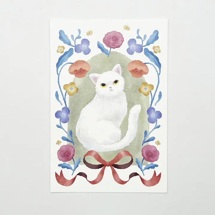 「在窗邊,由上竹洋子」 這是一張由愛貓創作者繪製的明信片,造型靈感來自貓咪的喜好。 你可以把它放在房間裡,當作賀卡送,或作為禮物附上訊息卡。 ♪ 找到你「最喜歡的貓咪」。