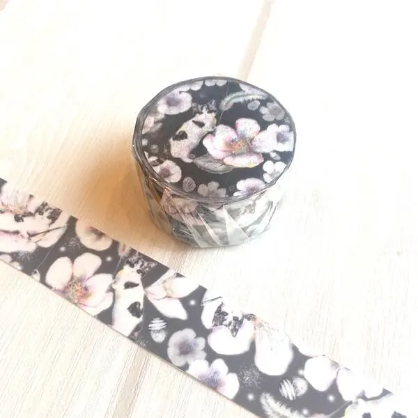 貓咪和花卉圖案搭配在蓬鬆和紙膠帶上,對大人來說很可愛。 「Ashita Donna Hi?」系列的遮蔽膠帶。 結合可愛的貓咪與神秘的世界觀, 為什麼不把你的筆記本或筆記本擺得可愛一點呢? [貓][貓][貓][日本製造] 貓用品? 可愛的文具附日文插畫 | 日本製造