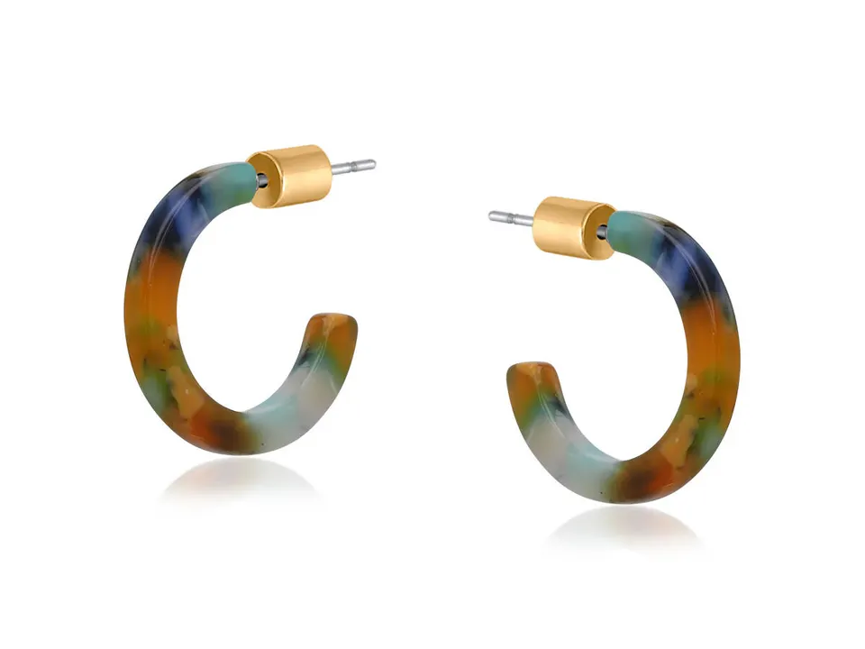 4048 Clara 小樹脂圈形耳環 橘色多重