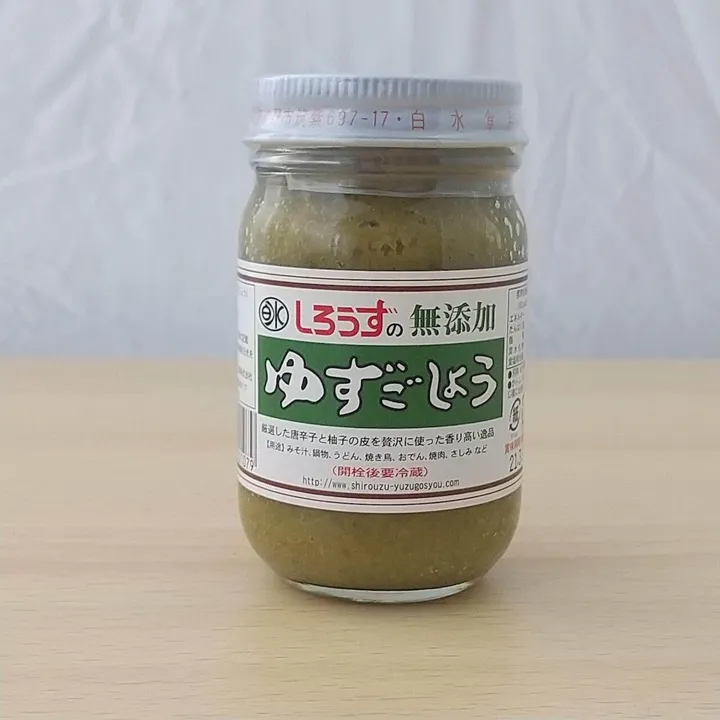 白水食品工業細心完成了《白水柚子五所》。 這道菜用香氣撲鼻的柚子皮和辣辣辣椒,將這道菜的風味提升到另一個層次。 它與味噌湯、火鍋、燒鳥、烏龍麵和生魚片等多種料理相得益彰。 你可以享受無添加劑獨有的天然香氣和銳利的辛辣。 無添加物Yusugosho 這是一顆香氣四溢的寶石,由精心挑選的辣椒和柚子皮製成。 [用途] 味噌湯、火鍋、烏冬、烤雞、關東煮、燒肉、生魚片等等。●名稱:辣味(柚子御書)