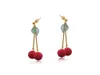 3741 百合珠櫻桃耳環 紅色