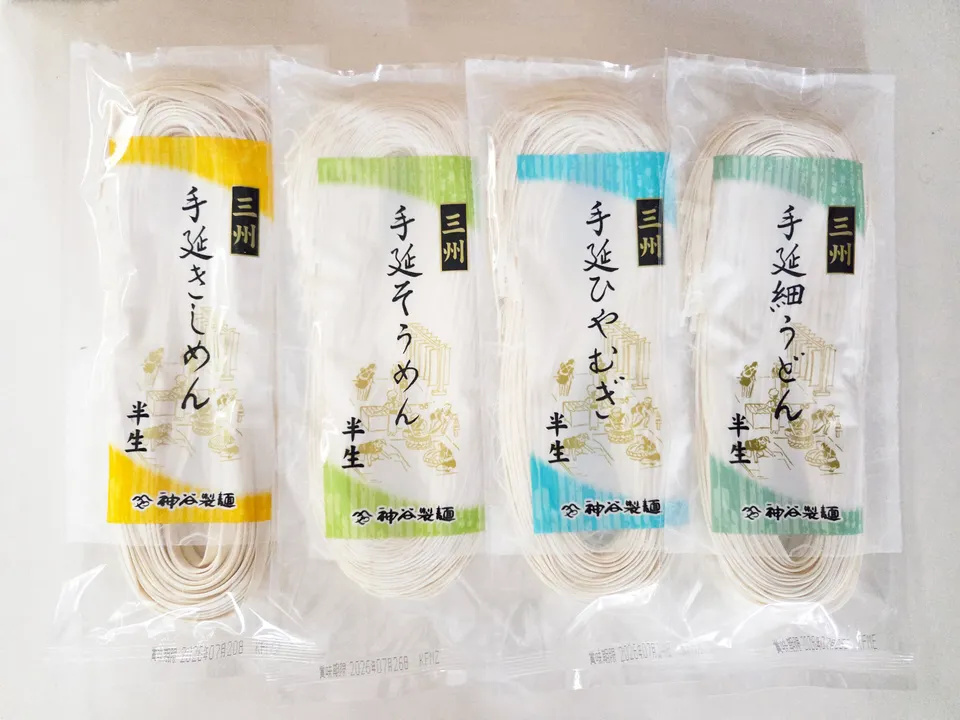 這是一套超值的品嘗組合,你可以品嚐神谷誠面生產的半生麵條。 內容物是[薄烏冬、似面、熱衣、岸面]。 其價格比一般價格更為親民。 [烏冬]未包含在本套中,因為它將於十月至四月限時販售。 如果你想試試看,請在十月左右購買。 麵條種類、嚼口感、口感以及湯的塗抹方式差異很大。 試一次,找到你最喜歡的麵條。