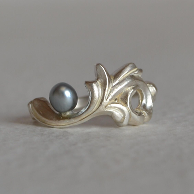 蔓藤花紋珍珠戒指 / 西式雕刻黑蝴蝶罌粟珍珠戒指 銀925
