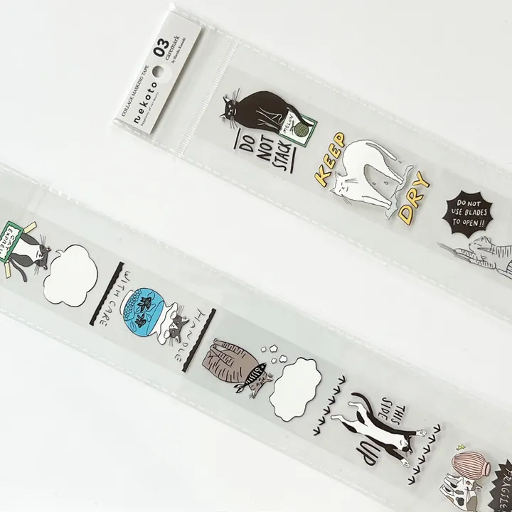 『caremark:神崎遙』 我讓貓咪示範了搬運行李的注意事項。 你可以在對話框裡寫訊息。 請在你的禮物中加入一個字,獻給你所愛的人。 「PET膠帶」 這是一種由透明薄膜材料製成的裝飾風格膠帶,深受海外文具愛好者喜愛。 只要剪貼,就能輕鬆做出時尚的拼貼。 插圖清晰又美麗,完成的效果看起來就像是你親手畫的! ----- 神崎遙 出生於靜岡縣濱松市,現居東京。 畢業於早稻田大學文學部。 在平面設計辦公室工作期間,他也活躍於自由插畫家的身份。 他喜歡畫各種雜物、食物和動物。